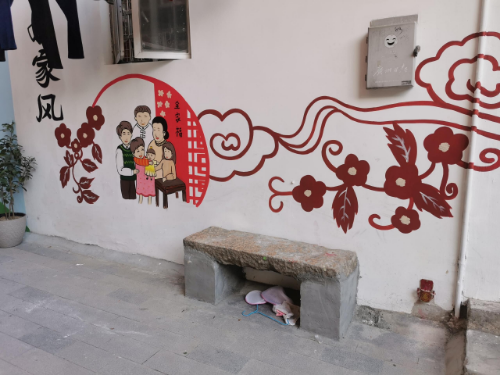彩繪墻上綠油油的草坪,小巧可愛的盆栽,生機盎然的樹木,讓社區(qū)不單單有平平無奇的白墻,更有翠綠隱藏深巷之中,與街巷融合成景,置身其中,有一種置身在花園里的感覺。靚麗多彩、栩栩如生的圖案讓老舊墻體“穿”上新衣,讓社區(qū)的色彩斑斕給居民群眾更多的視覺盛宴,居住在這里的居民對此贊不絕口。