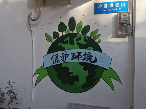 (圖:對沙基社區(qū)文化墻進行彩繪)