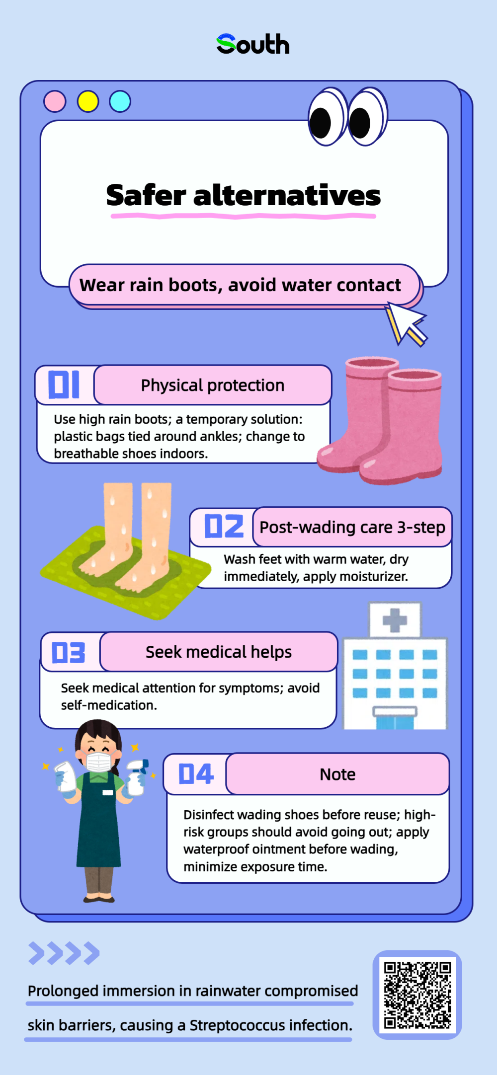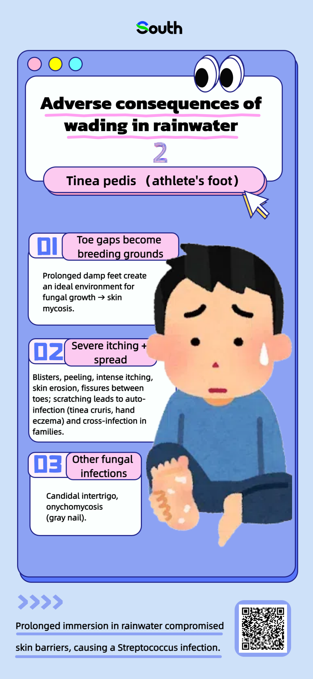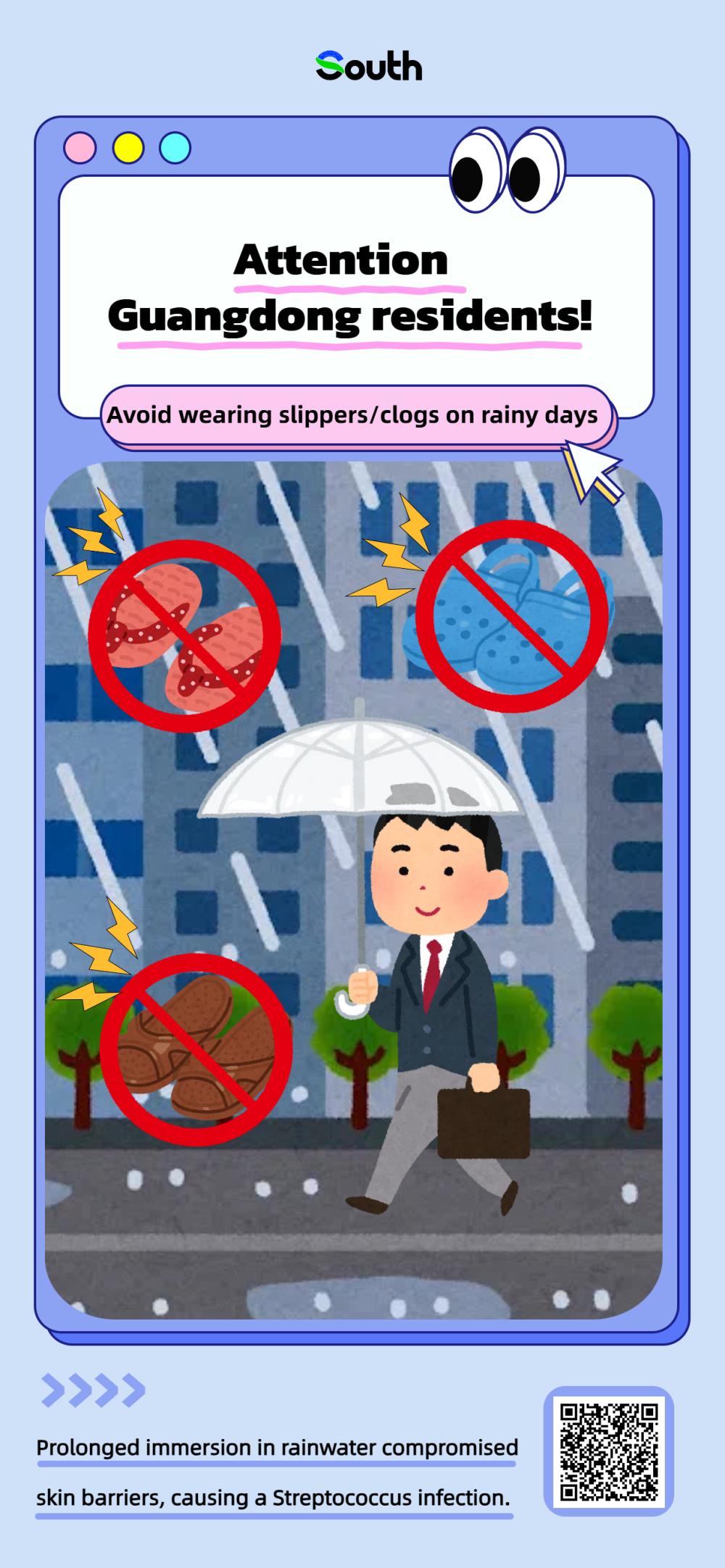 Recent typhoons in Guangdong have brought continuous rain during commutes, leading to waterlogged streets. Many people choose to wear slippers to wade through water for convenience. However, this habit may lead to serious consequences!