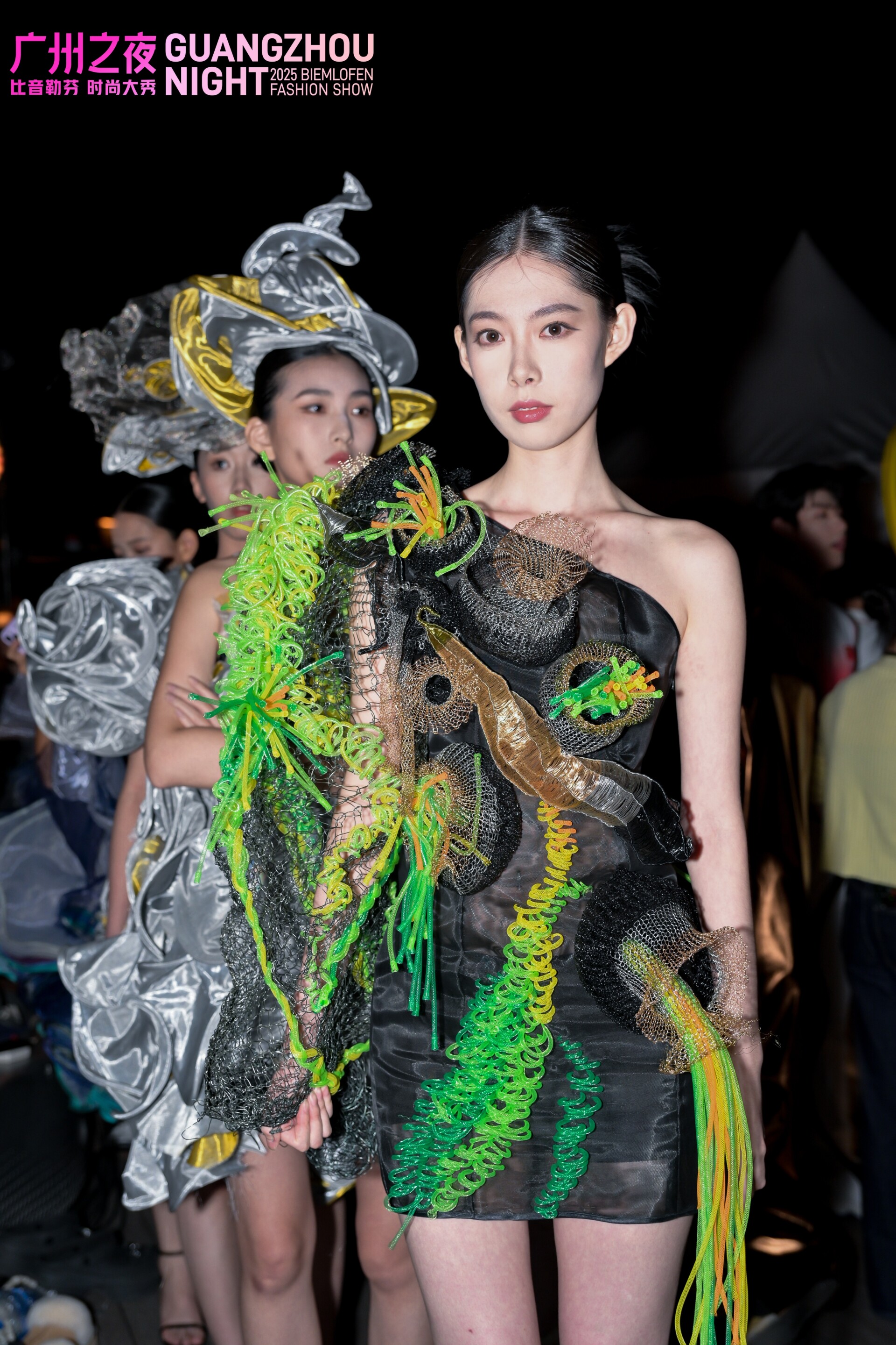 The show, themed "Weaving Dreams," featured Cantonese opera, Yingge dance and fashion performances, tracing Guangzhou's evolution from the Maritime Silk Road to a modern hub of the Guangdong-Hong Kong-Macao Greater Bay Area. Architect He Jingtang, golfer Feng Shanshan, and model Hu Bing joined the runway, along with folk artists and community representatives. Additionally, AI-assisted design and smart lighting highlighted Guangzhou's integration of technology and fashion.