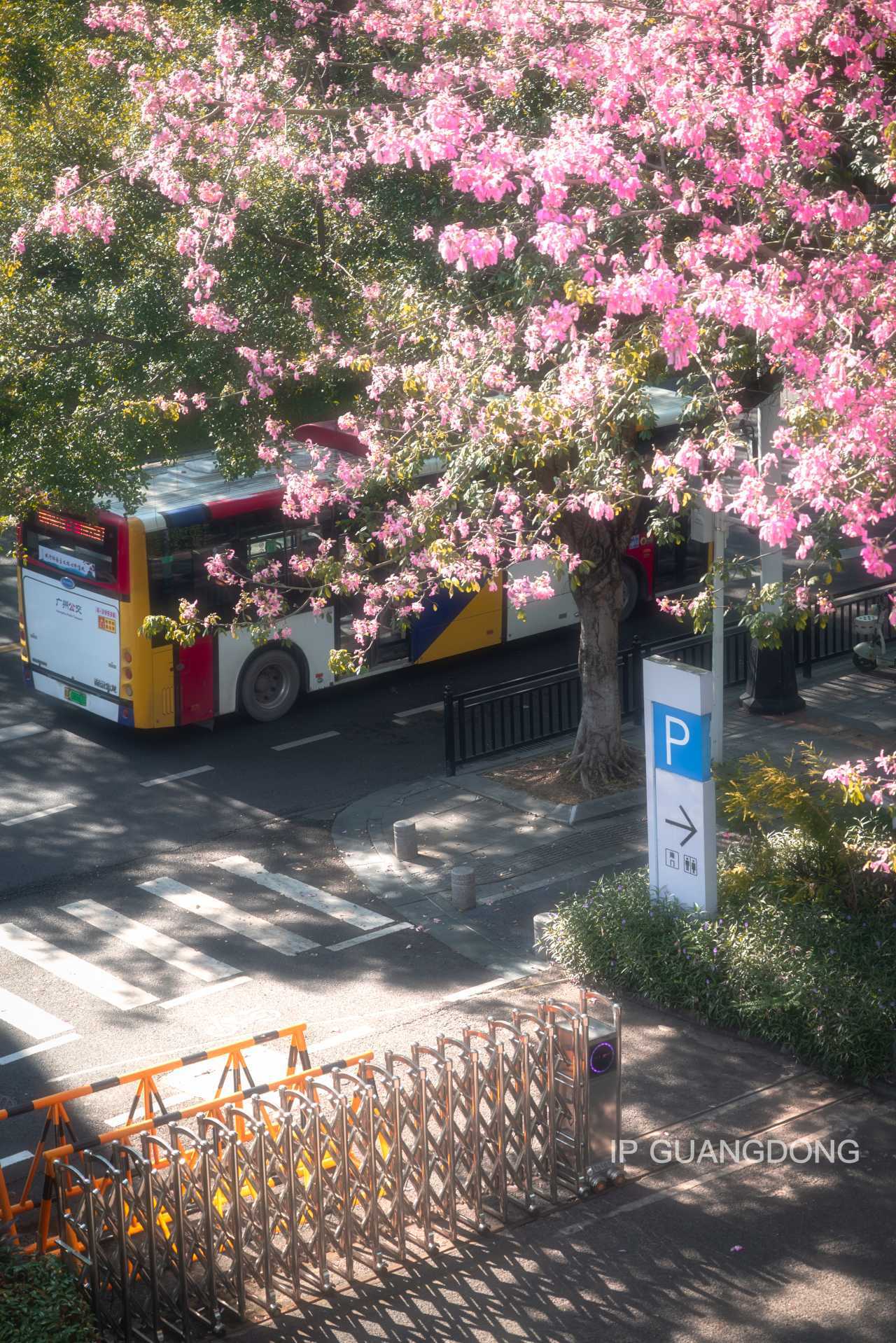 Sharp-eyed netizens quickly identified that the image, taken last November near Science City Metro Station in Huangpu District, Guangzhou, shows silk floss trees in bloom under warm afternoon light. A bus in the photo clearly displays the words "Guangzhou Bus," confirming its true location.