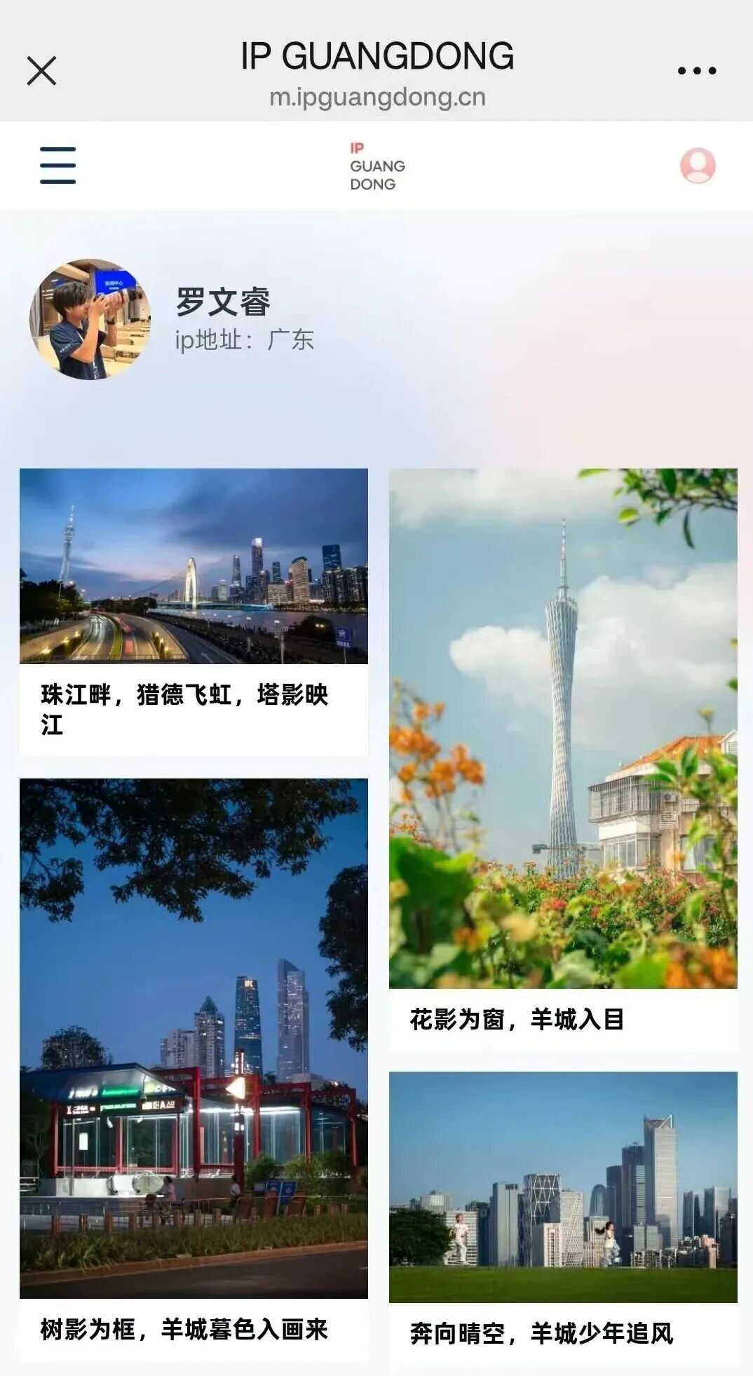 (Photo: A screenshot of Luo Wenrui's personal page on IP Guangdong)