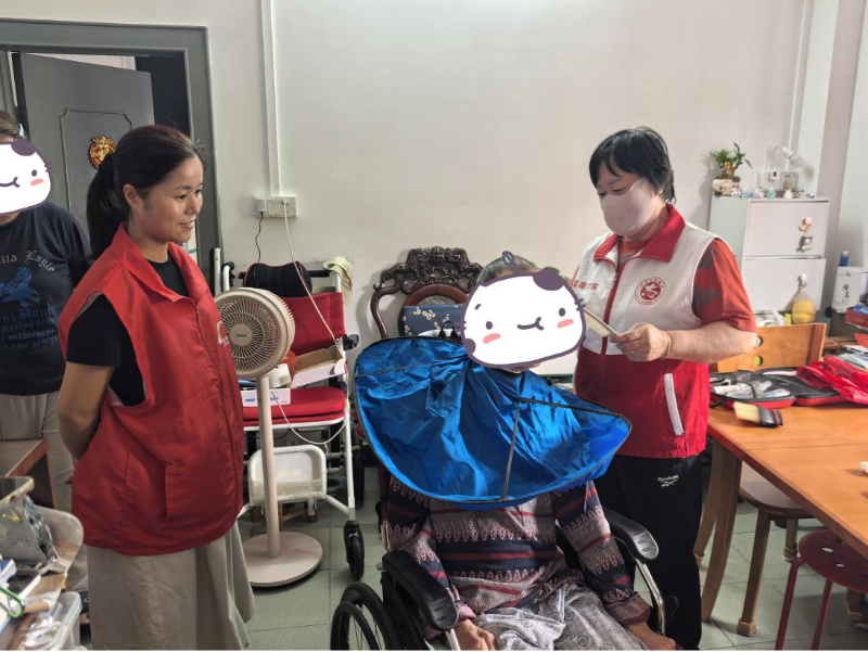 (圖:志愿者上門為行動不便的長者理發(fā))