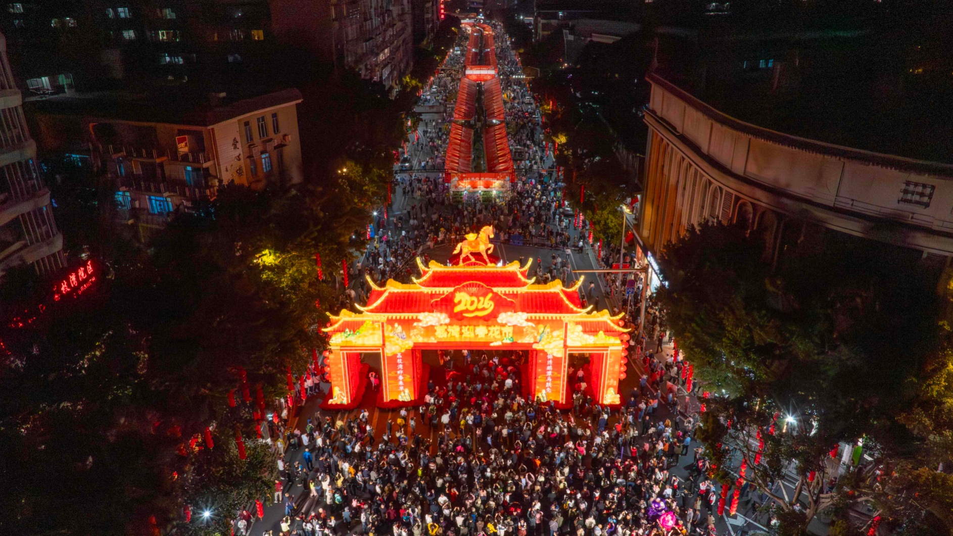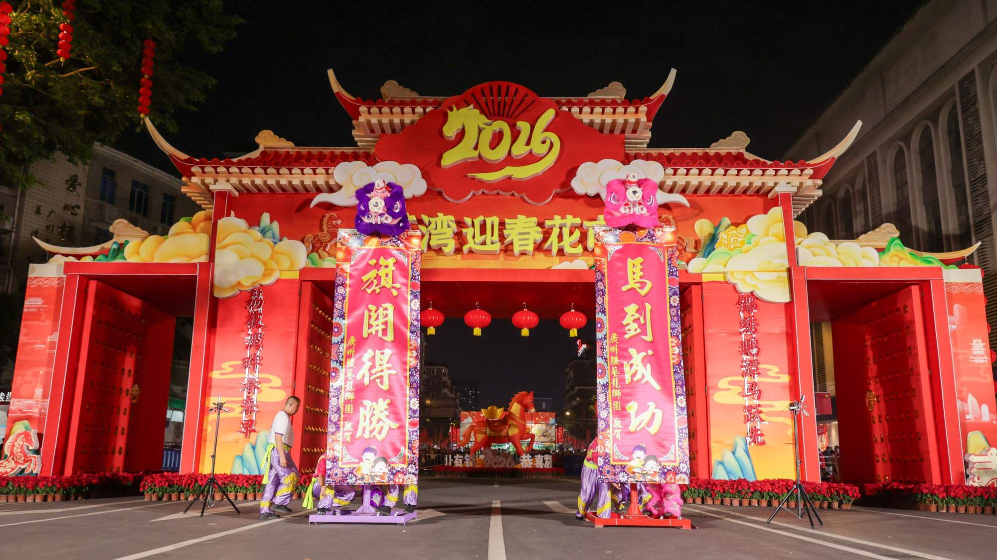 2月14日,2026年荔灣區(qū)傳統(tǒng)迎春花市在廣州正式啟動。主牌樓設(shè)計融合嶺南傳統(tǒng)花窗與馬年新春元素,寓意開門納福。