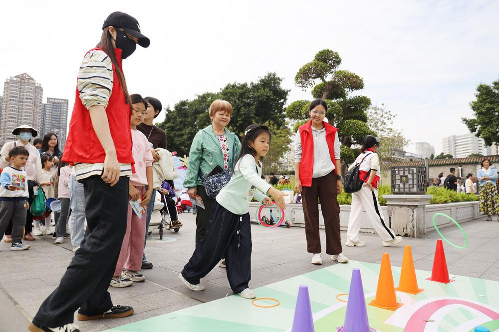 活動(dòng)設(shè)置了九大趣味游戲項(xiàng)目,從“九宮飛碟”到“古祠拼圖”,從“毽舞飛揚(yáng)”到“百發(fā)百中”,既有傳統(tǒng)體育精髓,又融入現(xiàn)代運(yùn)動(dòng)元素,滿足全齡段市民的參與需求。