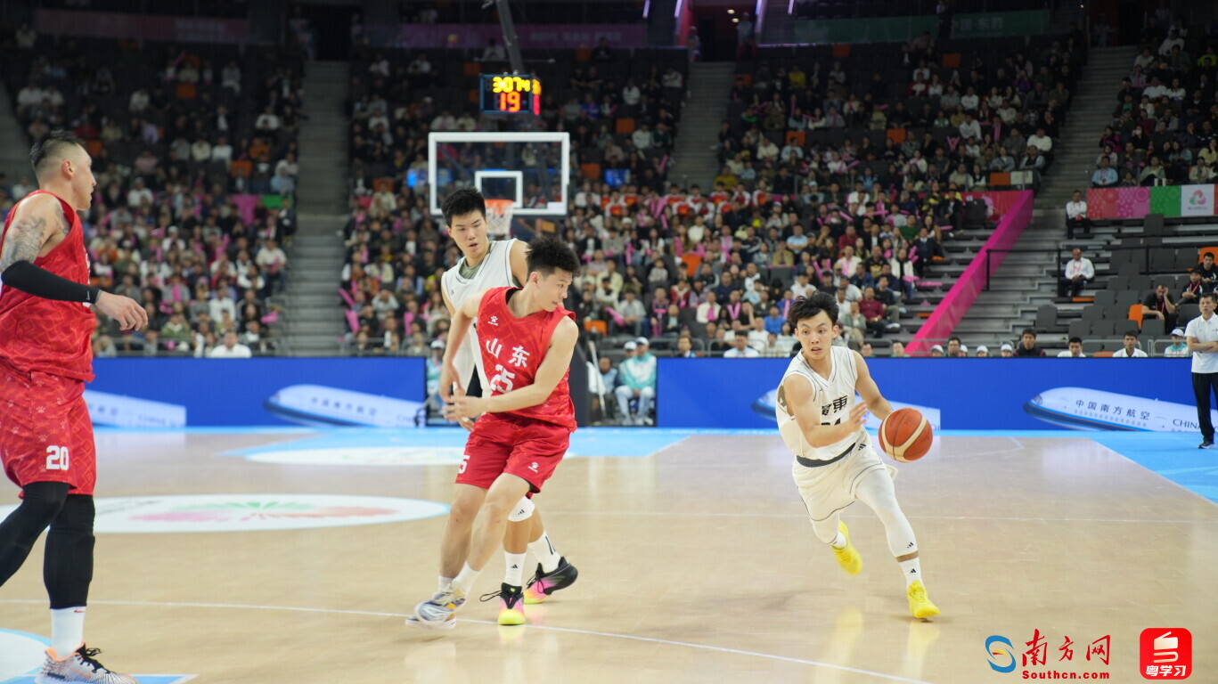 11月4日,十五運(yùn)會(huì)男子籃球項(xiàng)目成年組正式開賽。廣東隊(duì)首場小組賽在東莞市籃球中心對陣山東隊(duì)。