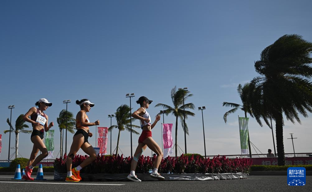 11月12日,第十五屆全國運(yùn)動(dòng)會(huì)田徑項(xiàng)目女子20公里競走決賽在廣東珠海舉行,北京選手楊家玉最終獲得冠軍。