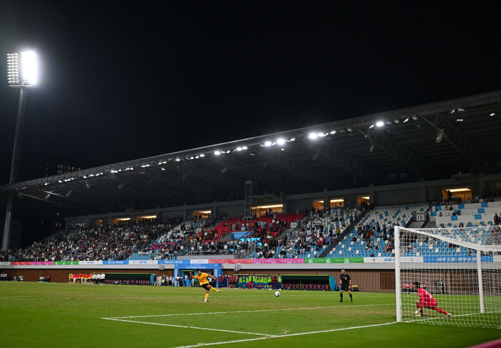 此后廣東隊(duì)繼續(xù)呈圍攻之勢,連續(xù)的高壓逐漸讓湖北隊(duì)后防出現(xiàn)漏洞。第73分鐘,整場表現(xiàn)十分活躍的廣東隊(duì)邊鋒鐘文在禁區(qū)線上被湖北隊(duì)后衛(wèi)伸腳絆倒,主裁再次觀看視頻判罰點(diǎn)球,鐘文親自操刀穩(wěn)穩(wěn)命中,1:0!廣東隊(duì)終于打破僵局。