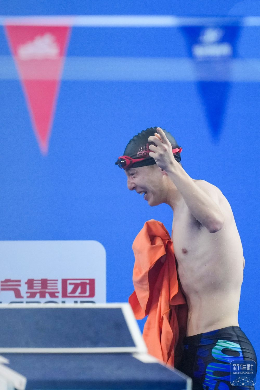 ↑內(nèi)蒙古隊(duì)選手孫宇亮在男子22-29歲組50米自由泳預(yù)賽后。新華社記者 伍志尊 攝