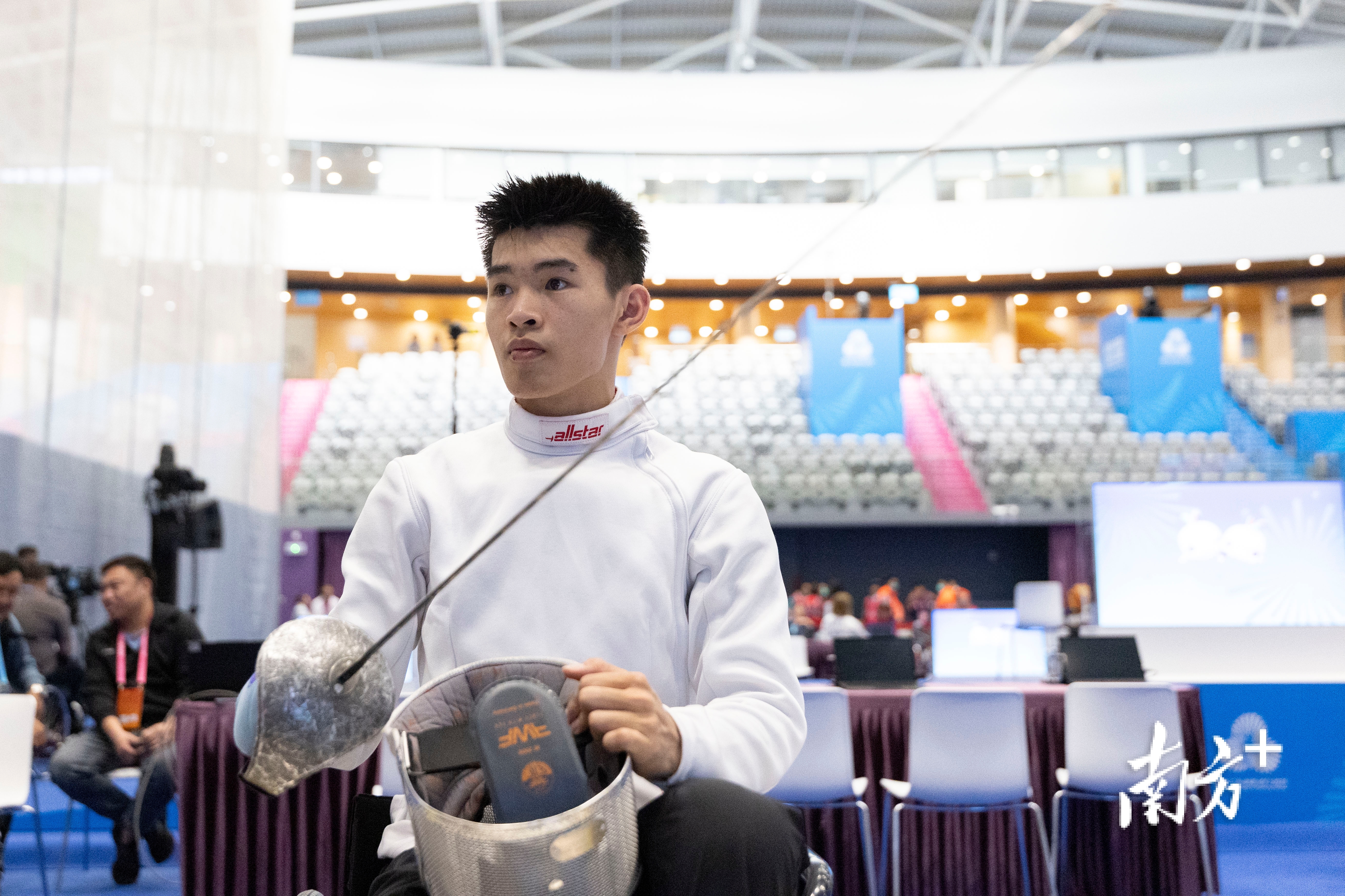 為備戰(zhàn)本屆殘?zhí)貖W會,廣東在2024年11月組建了首支輪椅擊劍隊。本屆殘?zhí)貖W會共有15名運動員參加重劍、花劍和佩劍三個劍種的比拼。隊員平均年齡22歲,14歲的隊員鐘英杰也是廣東省代表團年齡最小的運動員。