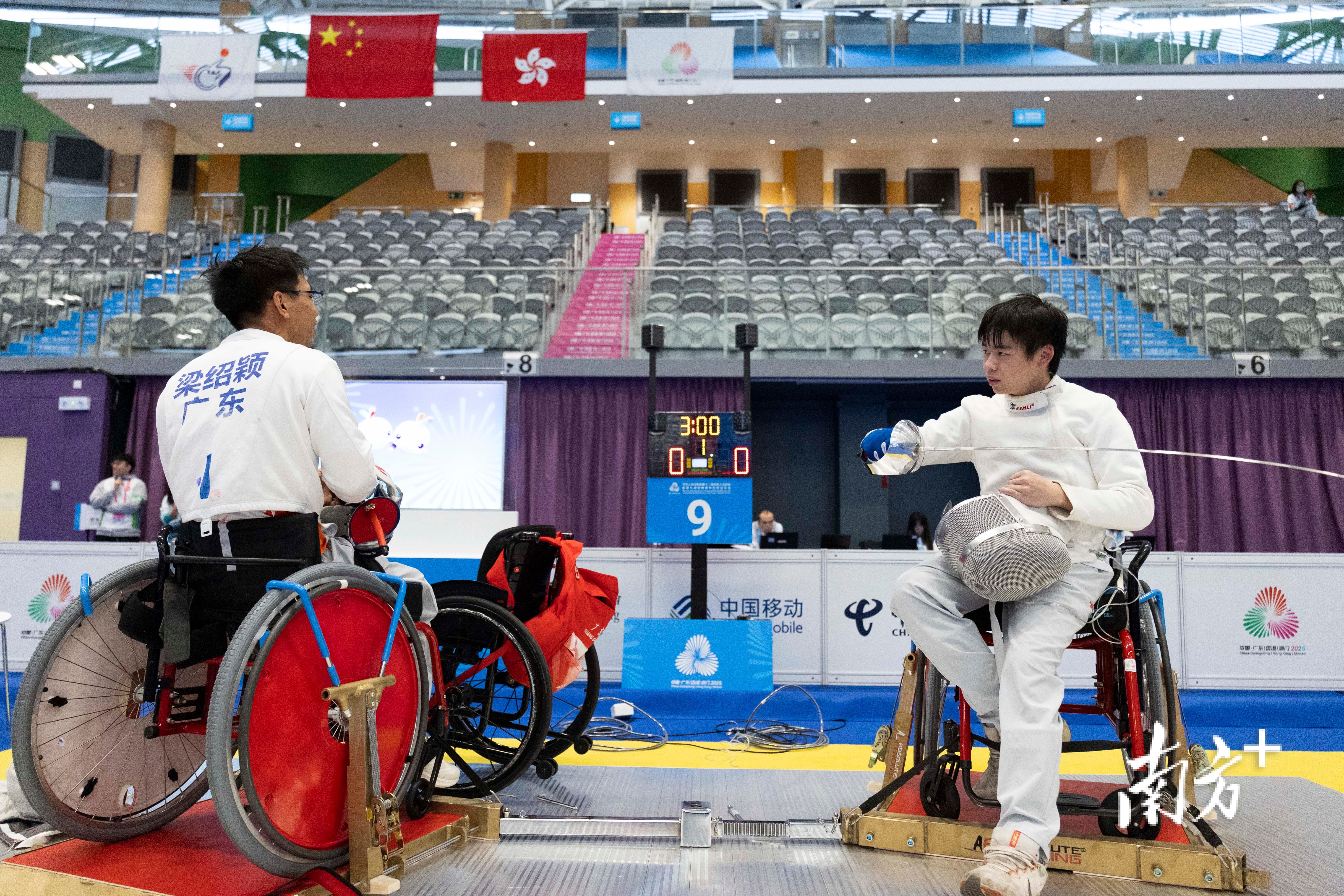 首日比賽,廣東多名運動員登場?!拔乙恢庇袀€武俠夢,擊劍是一個很酷的運動,我也想當一回劍客。當時看到廣東組隊招人,我就報名了,訓練一年多,我的身體也更強壯了?!睆V東省輪椅擊劍隊年齡最大的隊員梁紹穎說。
