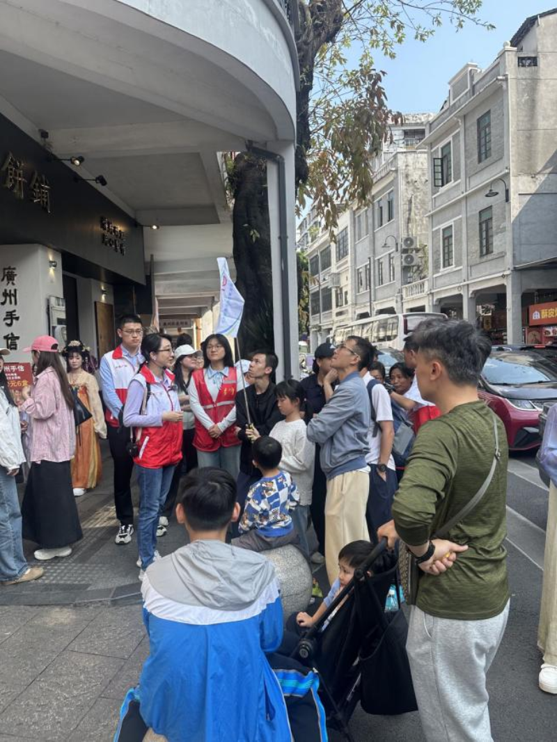 3月13日,“遇見永慶”定點(diǎn)公益講解服務(wù)正式啟動(dòng)。該服務(wù)依托永慶坊黨群服務(wù)驛站陣地優(yōu)勢(shì),整合各方志愿力量。經(jīng)過(guò)系統(tǒng)培訓(xùn)的志愿者們,身著紅馬甲,在驛站設(shè)置的各個(gè)講解點(diǎn)熱情服務(wù),他們中有深耕社區(qū)的老黨員,有朝氣蓬勃的青年志愿者,還有熱愛西關(guān)文化的本土非遺愛好者。從廣繡廣彩的技藝傳承,到永慶坊城市更新的歷程,他們將非遺文化與歷史故事娓娓道來(lái),使老街區(qū)成為傳播西關(guān)文化的“露天課堂”。此外,志愿者們還主動(dòng)為游客提供路線指引、免費(fèi)咨詢等便民服務(wù),耐心解答每一個(gè)問(wèn)題,讓游客們?cè)隈雎犞杏|摸老城肌理,在行走間感受溫暖細(xì)致的“驛站溫度”。
