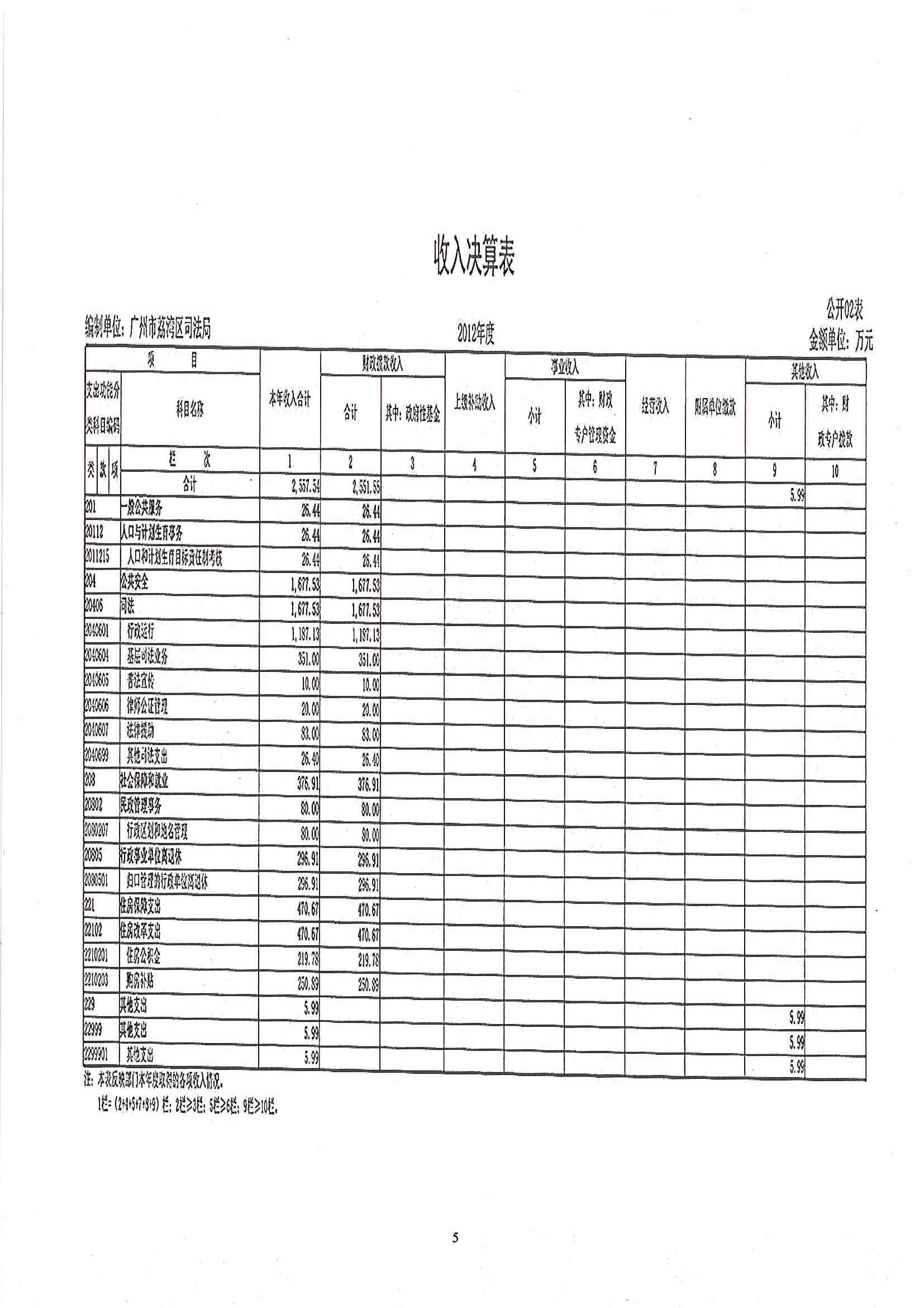 荔灣區(qū)司法局2012年部門決算